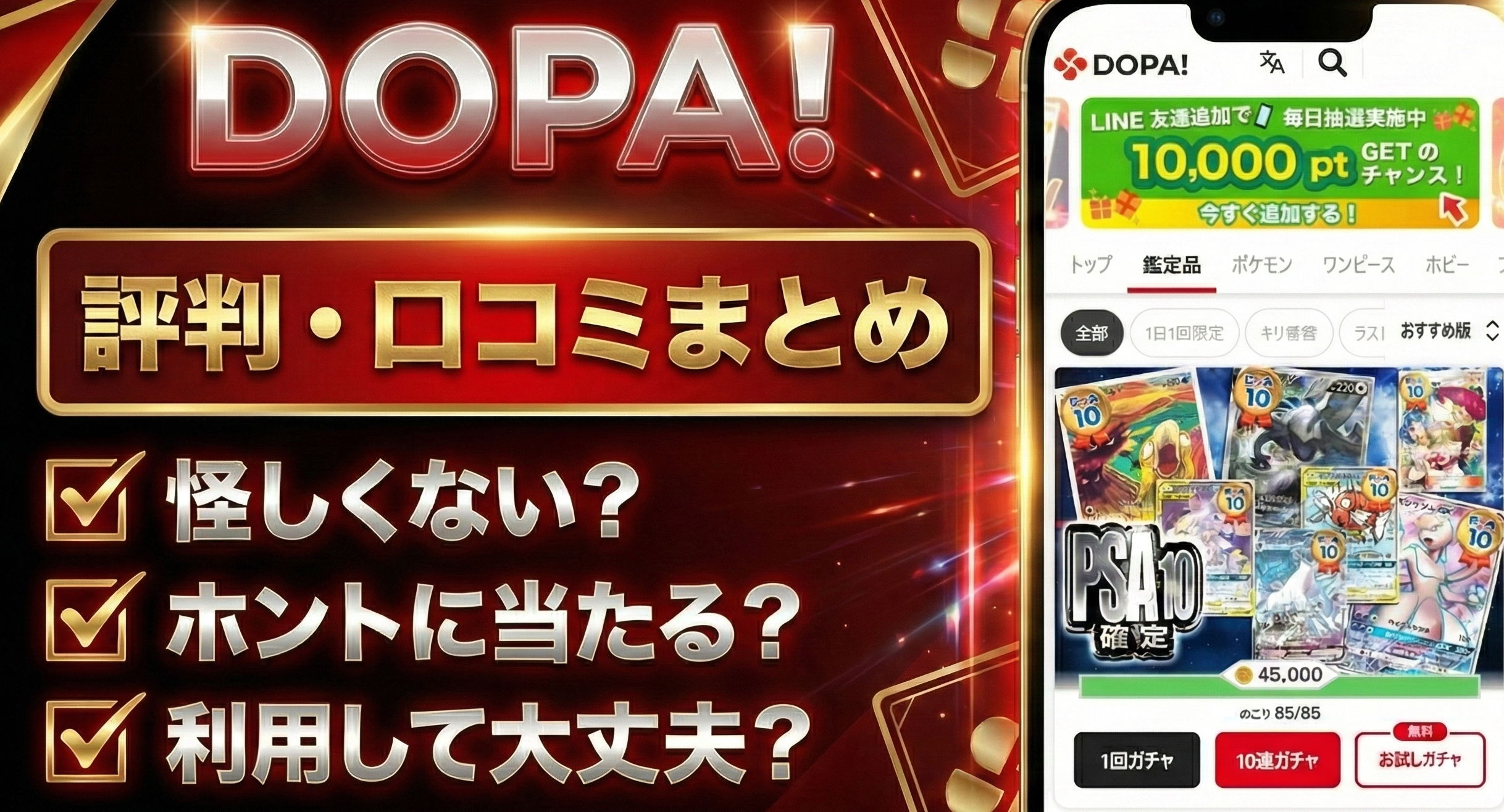 DOPAオリパは、数あるオンラインオリパサイトの中でも特に人気が高く、SNSなどでも頻繁に話題に上ります。しかし、「本当に当たるの?」「怪しいサイトではないか?」といった疑問を持つ方も少なくありません。この記事では、DOPAオリパの実際の評判や口コミ、そして筆者自身の体験談を交えながら、その実態を徹底的に検証します。